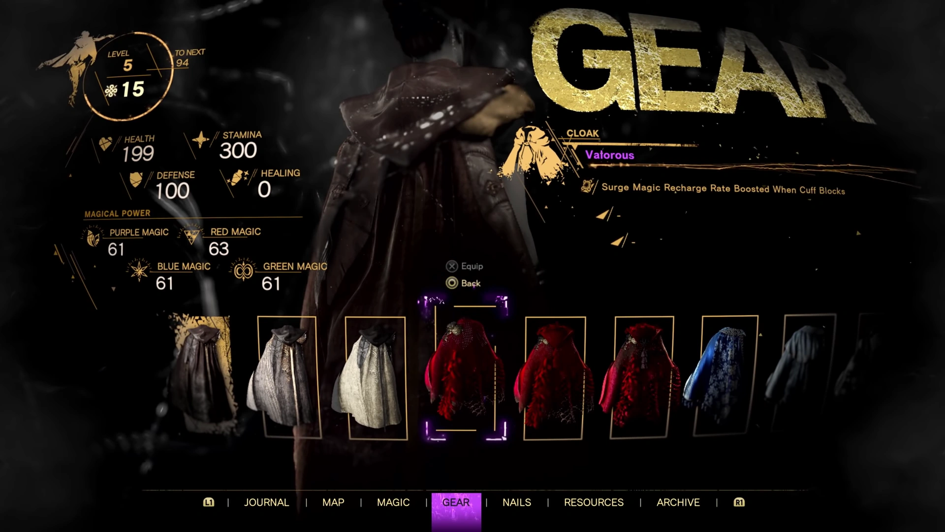 Cloak is an option under Gear in Forspoken. The Cloak worn by Frey Holland changes how she visually appears in the field, but they also add additional effects to her.